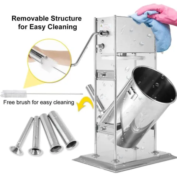 Fem korvrör med olika diameter ingår, så att du kan göra korvar i olika storlekar. Idealisk för användning i kök, barer, restauranger och många andra livsmedelsbearbetningsplatser.