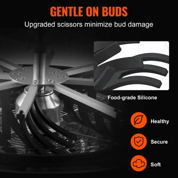 -Snäll beskärning: Du behöver inte längre oroa dig för skadade knoppar. Använd 30 gånger kraften än en sax för att försiktigt trimma knoppar, bevara deras styrka, smak och visuella tilltalande. Den tar försiktigt bort överflödiga löv samtidigt som den behåller trikomer och bibehåller knoppens strukturella integritet. Ta väl hand om din skörd.