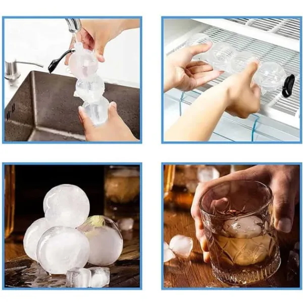 En form skapar enkelt 4 runda isbitar. Allt du behöver göra är att hälla vatten i formen och ställa in den i frysen. För att få riktigt genomskinlig is rekommenderas det att vattnet kokas innan frysning!