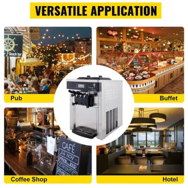 Denna mjukglassmaskin används ofta i restauranger, kaféer, snackbarer, snabbmatsrestauranger, stormarknader och andra platser med efterfrågan. Gör mjukglass, yoghurt eller sorbet på några sekunder utan krångliga steg.