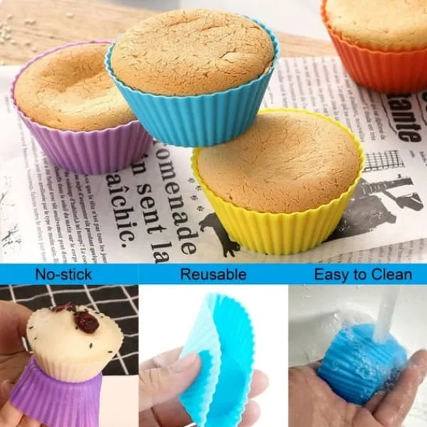 Multifunktionella muffinsformar: Silikonformar för muffins är mycket lämpliga för att göra bakverk, bröd, frysta desserter, muffins, mousse, pudding, surdegsbuffé, brownie-muffins, choklad, vaniljsås, gelé, kakor etc. Denna silikonform för muffins passar för de flesta fester, bröllop, födelsedagar, babyshowers, catering, maratonlopp, Halloween, Thanksgiving, julbakning.