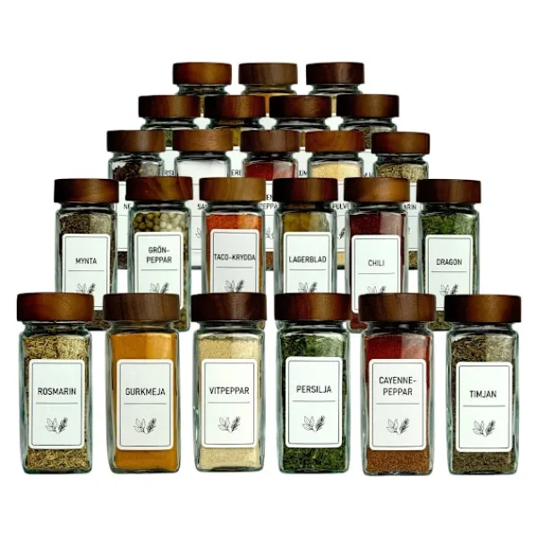 Med detta 24-pack kryddburkar i glas med mörkbruna akaciaträlock får du en sammanhängande och snygg kryddförvaring som lyfter känslan i hela köket. Ett lagom stort set för dig som har många olika kryddor men vill att allt ska kännas genomtänkt och enhetligt.