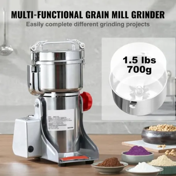 Denna spannmålskvarn uppfyller alla dina dagliga malningsbehov. Spannmålskvarnen kan mala stora mängder spannmål, vilket gör mjöl och recept mycket enkelt. Spannmålskvarnen använder en höghastighetsmotor för att snabbt krossa olika mjuka och hårda material.