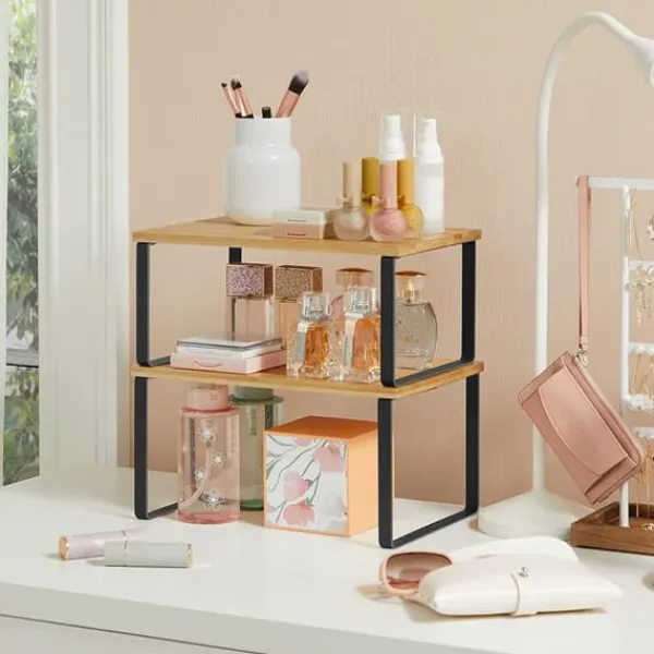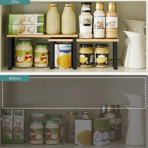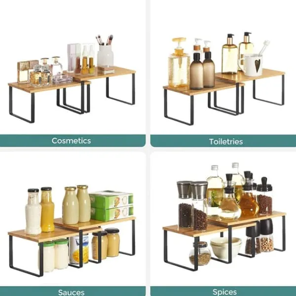 - I köket: Placera hyllorna i skåpet eller på bänkskivan för att maximera förvaringsutrymmet. Perfekta för kryddburkar, burkar och skålar. Ett utmärkt sätt att organisera köksredskap och ingredienser.