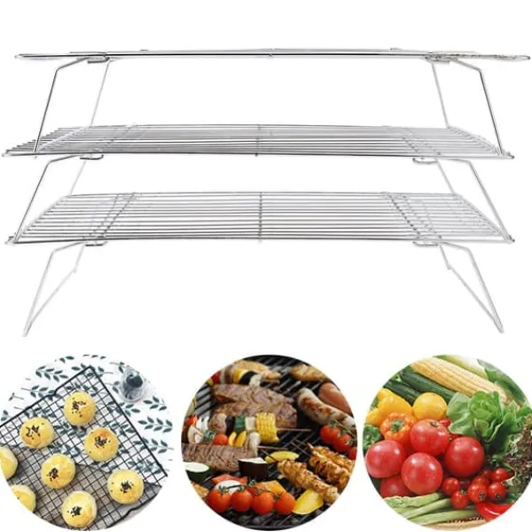 Välkommen till vår butik! Detta hopfällbara kylställ i 3 nivåer har en stor yta, perfekt för att effektivt kyla scones, kakor och muffins. Dess rutmönster säkerställer optimal luftcirkulation för jämn och snabb bakning. Det är ett viktigt verktyg för att kyla kakor snabbt, vilket förhindrar fukt och gör det idealiskt för daglig användning. Den hopfällbara bendesignen möjliggör enkel förvaring när den inte används, och de bågformade fötterna ger stabilitet utan att glida. Tillverkad av högkvalitativt, värmebeständigt järn med en non-stick yta, är den hållbar och lätt att rengöra. Du får totalt 3 kylställ. Varje ställ mäter cirka 34,3 x 24 x 19,4 cm (13,5 x 9,4 x 7,6 tum) och väger cirka 820 g (28,9 oz). Nöjdhet: Våra kunder är vår högsta prioritet. Om du upptäcker några produktproblem efter att du mottagit varorna, såsom skador eller felaktig mängd varor, vänligen kontakta säljaren omedelbart. Vi gör vårt bästa för att ge dig tillfredsställande kundservice.