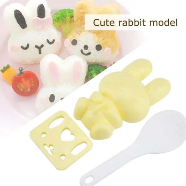 Välkommen till vår butik! Denna bedårande kaninformade ris-onigiriform är tillverkad av högkvalitativt, livsmedelsklassat PP-material, vilket garanterar säkerhet och tillförlitlighet utan obehaglig lukt. Den låter dig enkelt och snabbt skapa icke-klibbiga risbollar. Den söta tecknade kanindesignen är perfekt för att engagera barn i roliga matlagningsaktiviteter och uppmuntra dem att njuta av hemlagad onigiri. Produkten väger 41 g (1,4 oz) och finns i två valfria färger: gul eller rosa. Din beställning inkluderar 2 formar och 1 skopa för bekväm användning. Nöjdhet: Våra kunder är vår högsta prioritet. Om du upptäcker några produktproblem efter att du mottagit varorna, såsom skador eller felaktig mängd varor, vänligen kontakta säljaren omedelbart. Vi gör vårt bästa för att ge dig tillfredsställande kundservice.