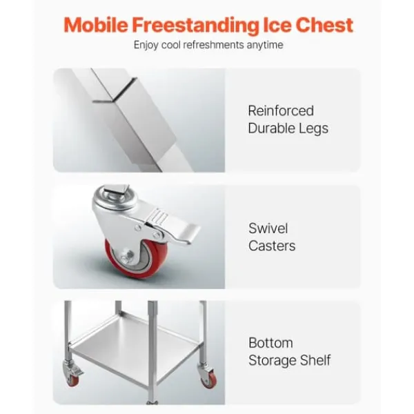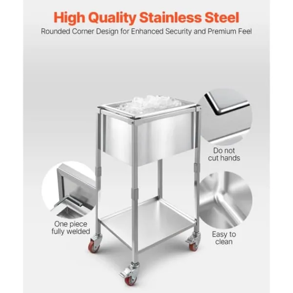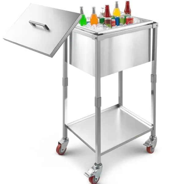 Med hjul för enkel transport är detta perfekt för restauranger, hotell, internetcaféer och fester. Kan användas både inomhus och utomhus utan behov av kylskåp.