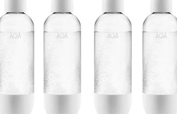 PET-flaska (1 liter), som med sitt tätslutande lock ser till att drycken hålls kolsyrad längre tid. Kompatibel med WasserMaxx och AGA kolsyremaskiner.