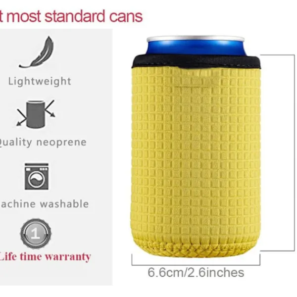 Bekvämt Grepp: Den texturerade neoprenytan erbjuder ett säkert och bekvämt grepp och förhindrar att din burk glider ur handen. Detta är särskilt användbart under aktiviteter som sportevenemang, strandutflykter eller avslappnade sammankomster där spill lätt kan uppstå. Neoprenmaterialet är mjukt vid beröring och ger en behaglig taktil upplevelse när du håller din dryck. Den åtsittande passformen säkerställer att hylsan sitter på plats, även när du är på språng. Njut av dina drycker med självförtroende, med vetskapen om att du har ett fast och bekvämt grepp, vilket minskar risken för olyckor och kladd. Dessa burk kylare är designade för både funktionalitet och komfort, vilket gör dem till ett viktigt tillbehör för alla dryckesentusiaster.