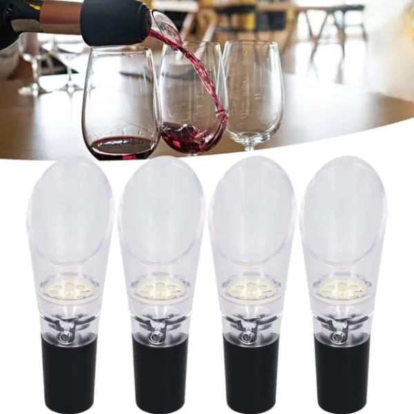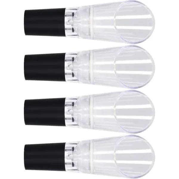5、[Brett tillämpning] Används i stor utsträckning vid fester, barer, familjemiddagar, resor, camping, bröllop och det dagliga livet. Kan även användas som födelsedagspresenter, nyårspresenter, julklappar etc. Artikeltyp: Material för vinluftare: PC Vikt: Ca. 80 g / 2,8 oz övre kaliber Storlek: Ca. 4,3 x 3,1 cm / 1,7 x 1,2 in 4 x vinluftare hällare 100 % nöjd : Våra kunder är vår högsta prioritet. Om du upptäcker några produktproblem efter att ha mottagit varan, såsom skador och felaktig mängd varor, vänligen kontakta säljaren omedelbart. Vi gör vårt bästa för att ge dig tillfredsställande service efter försäljning.