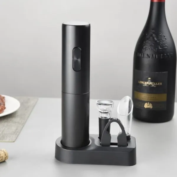 Elektrisk vinöppnare: Det här setets huvudfunktion, den elektriska vinöppnaren, gör det enkelt och snabbt att avkorka flaskor, perfekt för vinentusiaster på alla nivåer