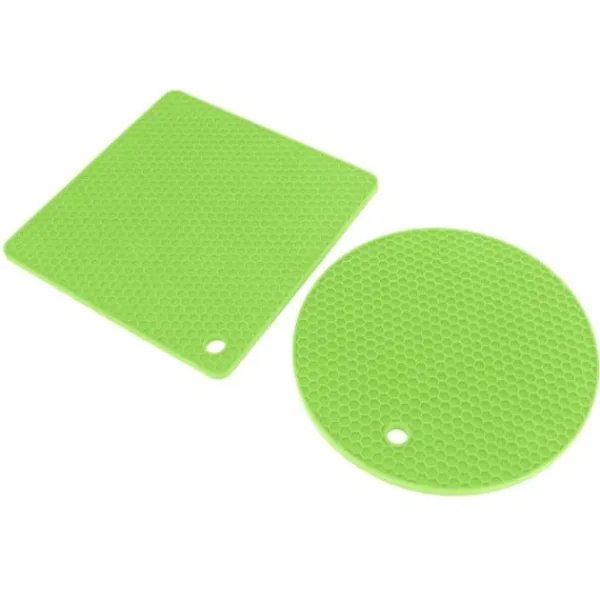 Välkommen till vår butik! Detta set innehåller högkvalitativa silikonkökstillbehör designade för mångsidighet och hållbarhet. Varje förpackning innehåller 5 silikondynor (2 runda och 3 fyrkantiga) för pålitligt värmeskydd och daglig användning. **Produktinformation:** – **Material:** Livsmedelsklassad silikon, BPA-fri, giftfri och säker för matlagning. – **Värmebeständighet:** Tål temperaturer från -40°C till 230°C och skyddar ytor från heta grytor, stekpannor och tallrikar. – **Halkfritt grepp:** Säkerställer stabilitet och förhindrar oavsiktligt spill eller halkning. – **Mångsidig användning:** Perfekt som grytställ, torkdynor, skedhållare eller underlägg. – **Enkelt underhåll:** Handdiskas eller diskmaskinssäker; snabbtorkande bikakedesign motstår fuktuppbyggnad. – **Kompakt förvaring:** Kan rullas ihop eller hängas för platsbesparande bekvämlighet. **Mått och vikt:** – **Kvadratisk storlek:** 185 x 5 mm / 7,3 x 0,2 tum – **Rund storlek:** 180 x 7 mm / 7 x 0,3 tum – **Vikt:** 403 g / 14,2 oz Nöjdhet: Våra kunder är vår högsta prioritet. Om du upptäcker några produktproblem efter att du mottagit varorna, såsom skador eller felaktig mängd varor, vänligen kontakta säljaren omedelbart. Vi gör vårt bästa för att ge dig tillfredsställande kundservice.