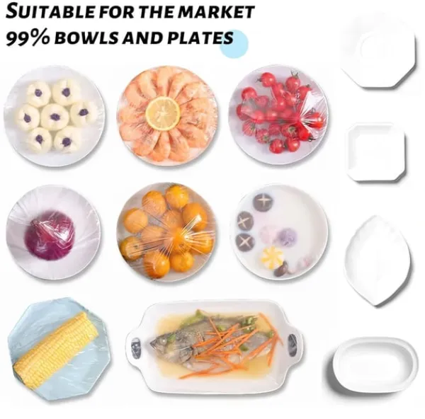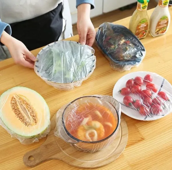 4. Till skillnad från andra plastomslag har våra fräscha påsar en elastisk öppning. Du kan enkelt använda den för att slå in valfri mattallrik, salladsskål med mera.