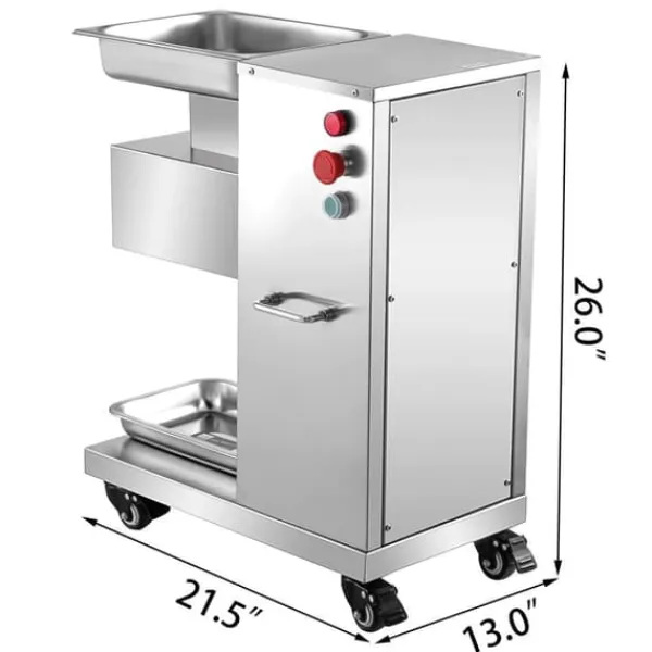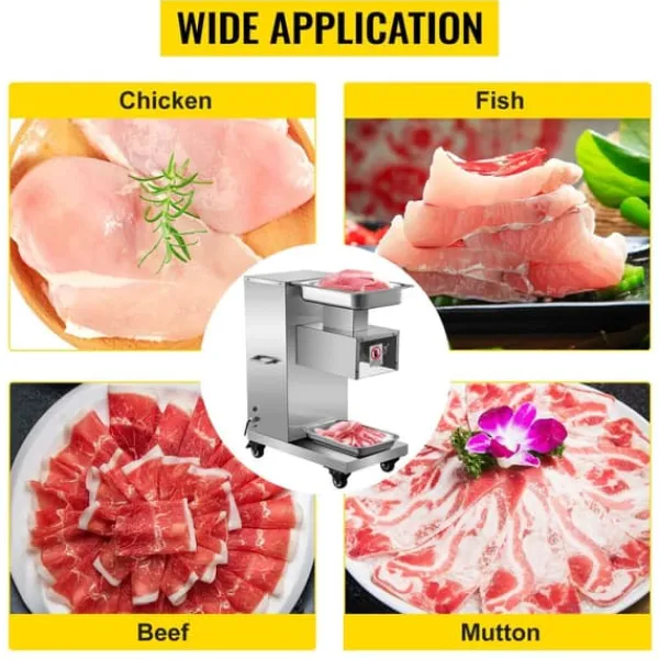 Denna elektriska köttskärare skär effektivt nötkött, fläsk, lamm och mer. Den är lämplig för liten cateringindustri, köttförädlingsföretag, dagis, små matsalar etc.