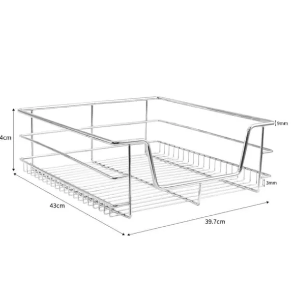 Vårt starka rostfria stål kompletterar metalltjockleken på 3 mm och 9 mm tråd för att förse styrka och stabilitet. Enheten inkluderar både löpare och fästen för att enkelt tillåta ergonomisk användning och för att anpassa sig till din arbetsmiljö. Med de medföljande skruvarna kan du enkelt montera din korg på några minuter så att du enkelt kan arbeta med att maximera din förvaringsyta.