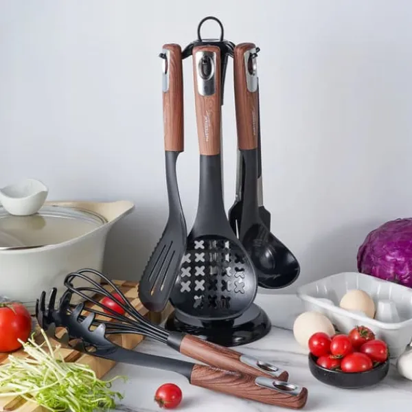 - Praktiskt stativ möjliggör bekväm förvaring och snabb åtkomst till verktyg under matlagning.