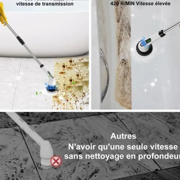 7 multifunktionella borsthuvuden: Den elektriska borstsatsen innehåller 7 utbytbara borsthuvuden, som möter alla rengöringsområden i kök och badrum, såsom badrum, kök, grill, spishäll, kraftigt oljade väggar, spricka, diskho, golv, injekteringsbruk, badkar, toalett, bil, bilhjul, golv, koppar, fönster, disk m.m. Alla hörn kan rengöras som nya med vår kraftfulla roterande borste. En för att ersätta de andra borstarna.