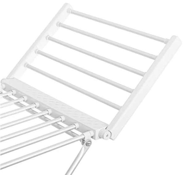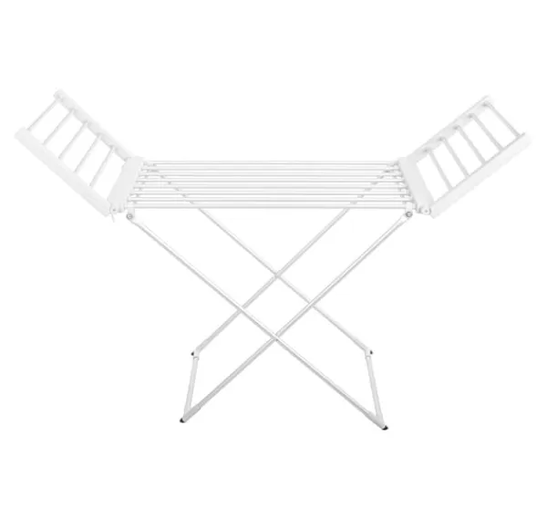 Övriga egenskaper: Mått utfällt: 148 x 52,5 x 90 cm; Vikta mått: 113 x 52,5 x 8 cm; Värmeelementet är en elektrisk värmare inbyggd i alla rör; Plastfötter för att skydda golvet; Minskar torktiden jämfört med traditionell metod; Nätsladdslängd: 2m