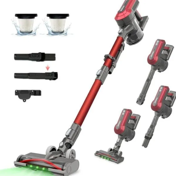 Den 3:e generationens borstlösa BLDC-motor på 450 W erbjuder ett sugkraft på upp till 45 000 Pa, vilket garanterar djupgående rengöring genom att enkelt lyfta damm, skräp och husdjurshår från olika ytor – mattor, trägolv eller kakelgolv. Utrustad med ett integrerat lithiumbatteri med 8 celler, fungerar denna enhet i upp till 60 minuter i ECO-läget, 25 minuter i normalt läge och 10 minuter i Max-läget. Den laddas helt på endast 4 till 5 timmar, vilket är idealiskt för effektiv rengöring av hela hemmet. Med en vikt på bara 2,15 kg är det den lättaste högpresterande trådlösa dammsugaren på marknaden. Utrustad med en motoriserad turbo-borste utan sammanflätning (Tangle Free) och gröna LED-lampor som guidar dig enkelt för att upptäcka smuts och skräp. Inkluderar en väggfäste och levereras med ett extra HEPA-filter kostnadsfritt.
