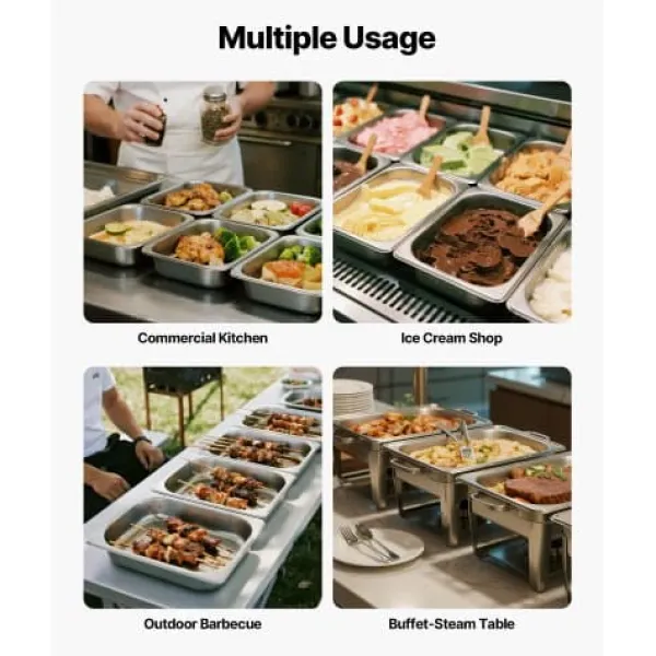 Detta set med hotellkantiner i rostfritt stål är utformat för både kommersiellt och hemmabruk, och erbjuder en hållbar, rostbeständig konstruktion som är idealisk för förvaring, tillagning och servering av både varma och kalla maträtter. Kantinerna har släta, rullade kanter för säkerhet och enkel rengöring, vilket gör dem perfekta för catering, bufféer, restauranger och fester. Deras mångsidiga design säkerställer att de uppfyller ett brett spektrum av behov inom matservering.
