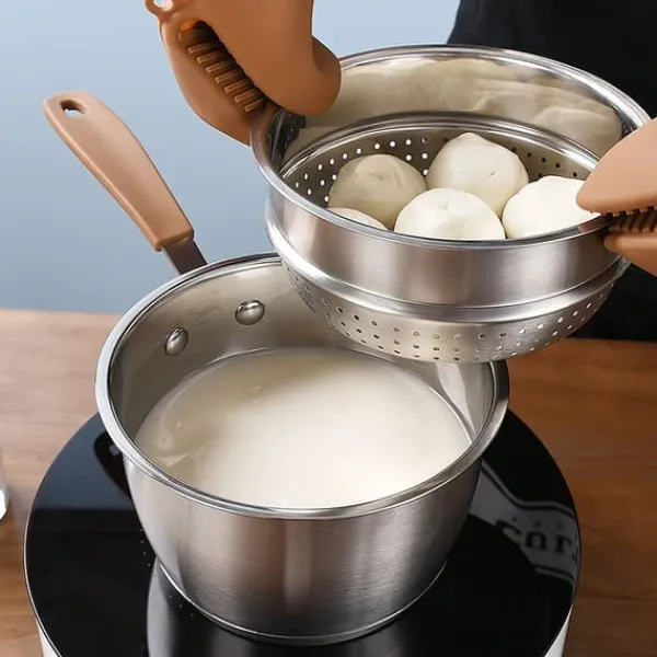 Material: Både såspannan och insatsen är tillverkade av högkvalitativt rostfritt stål. Har en 3-lagers botten med tjock aluminiumkärna som fördelar värmen jämt och effektivt. Glaslock som försluter ångan väl.