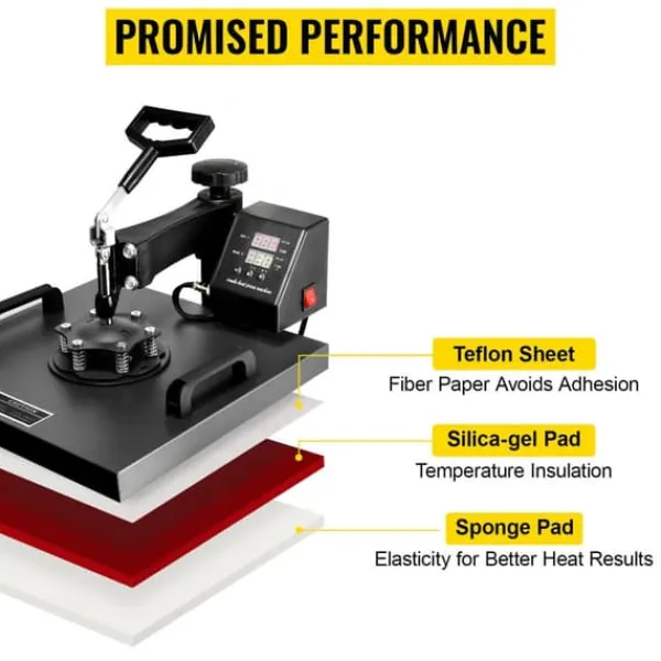 Denna 15 x 15-tums sublimeringspress i kombination med en böjd press för kapsyler ger gott om kreativt utrymme för mer grundläggande värmepressningsprocesser. Dessutom förbättrar de förtjockade panelerna bättre värmeisolering, vilket säkerställer god värmekonsistens.
