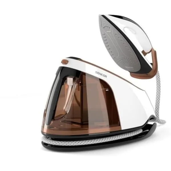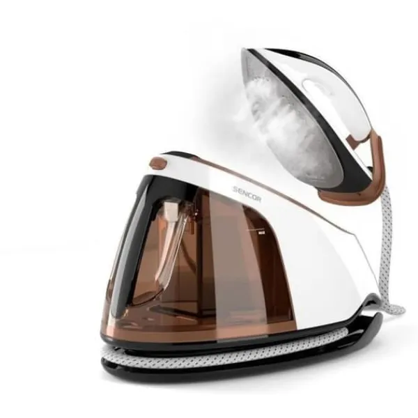 Dampstationen Sencor SSI 0950BZ erbjuder en effekt på 3000 W och en ångutsläpp på 160 g/min. Med sin tank på 1,5 L möjliggör den kontinuerlig påfyllning. Dess keramiska sål skyddar tyger, medan funktionen mot dropp och automatisk avstängning säkerställer en säker användning. Idealiskt för snabb och effektiv strykning.