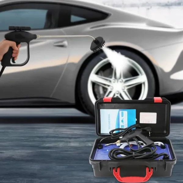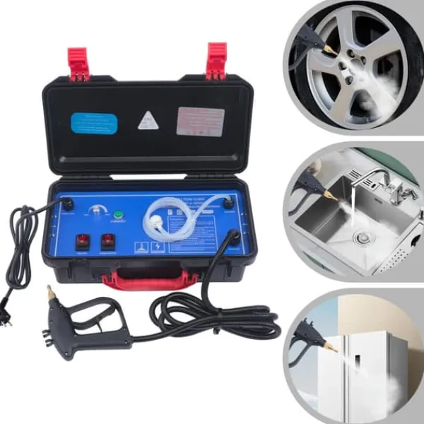 Kraftfull handhållen ångrengörare i svartDenna moderna handenhet på 3000 W och 220 V levererar våt- och torrånga för djup rengöring på många ytor. Robust konstruktion i ABS och rostfritt stål, EU-kontakt och smarta munstycken gör kök, badrum, bil och trånga utrymmen enklare att rengöra.