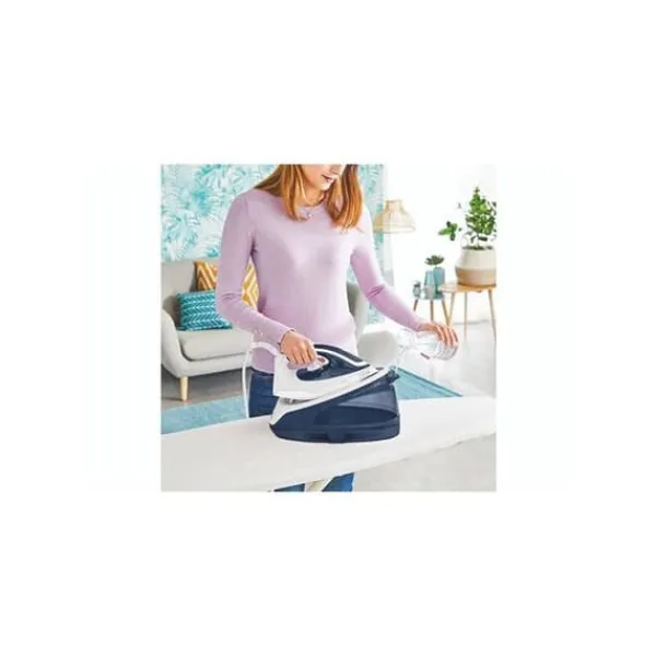 Upptäck Calor SV6116C0 Express Essential ångstation, kraftfull med 2200 W. Dess eleganta design i vitt och blått gör strykning enklare. Njut av en rabatt på 5 % för medlemmar på Fnac.com.