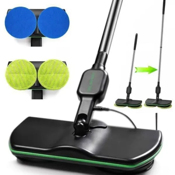 Sladdlös uppladdningsbar elektrisk kvast, elektrisk roterande, automatisk dammsugare, intelligent golvrengöringsmaskin | 180 graders rotation utan blinda fläckar: Sladdlös design, 180 graders rotation utan blinda fläckar, soffa, sängunderlag, möbelunderlag kan rengöras fritt. | Litiumbatteri med hög kapacitet: Litiumbatteri med hög kapacitet på 2000mAH, 50 minuters drifttid, 4 timmars laddningstid. | Tyst motor: Tyst, säker och stabil motor för långvarig användning. | Spara tid och arbete: Fotbrytare, aktivering med ett klick för rengöring, automatisk rotation av trasan, sparar tid och arbete. Byt ut när du vill: Konfigurera rengöringsdukarna och vaxdukarna när de är smutsiga. Rengör i hörnet, minskar effektivt mängden damm. Humaniserad låsdesign för att förhindra att produkten oavsiktligt berörs under arbetet och stänger av och slutar arbeta. | Tunnt handtag: Handtagets tjocklek är endast 7 cm, vilket sparar tid och ansträngning för en dödlig fri rengöring och löser enkelt problemet med att rengöra botten av soffor och sängar. | Övriga funktioner: Material: ABS + litiumbatteri + rostfritt stål – Vikt: ca 1,6 kg – Stolpens storlek: 106,5 cm – Produktens totala längd: 1,5 cm – Stolpe: 106,5 cm – Stolpe: 106,5 cm – Stolpe: 106,5 cm – Stolpe: 106,5 cm: 130 cm – Färg: Svart – Förpackningslista: 1x mopp 4x mikrofiberkuddar 4x kuddar, 1x laddningsadapter