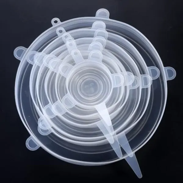 Återanvändbara silikonlock, 6 delar, extensibla, universella, för skål, kruka, mikrovågsugn, anpassningsbara korkar~100g vit