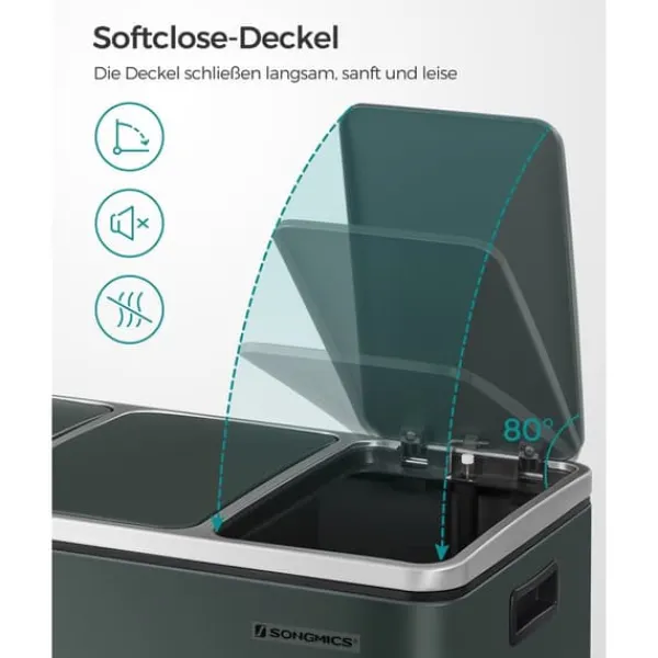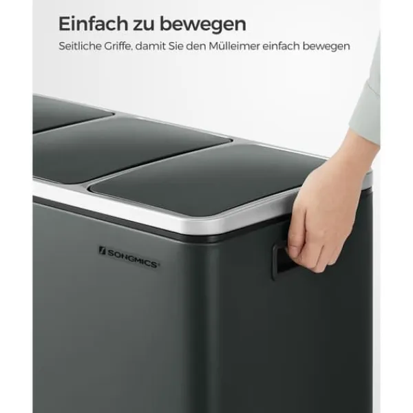 Denna eleganta pedalhink med tre fack gör återvinning och avfallssortering enkel och hygienisk tack vare handsfree-funktion och mjukstängande lock. De urtagbara innerhinkarna med handtag gör rengöring och underhåll smidigt, medan den rektangulära designen passar snyggt mot väggen för att spara plats.