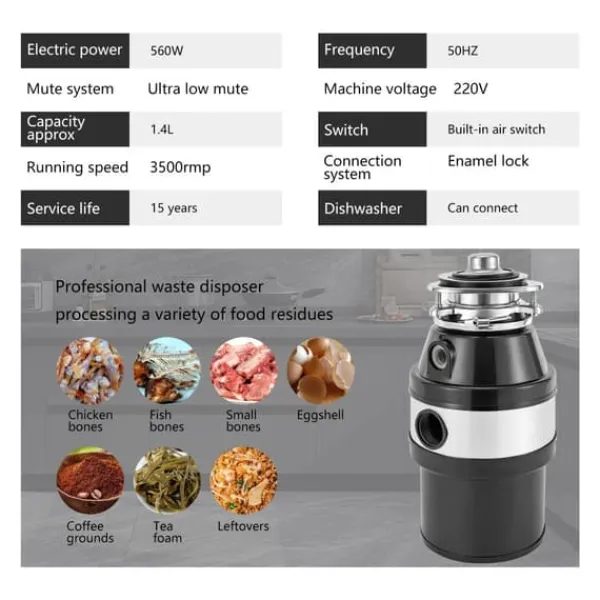Kraftfull matavfallskvarn med 560W kopparmotor och stor kapacitet