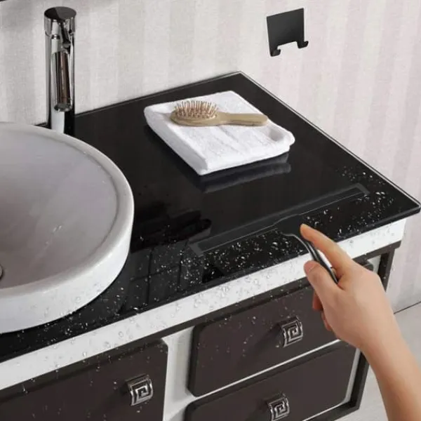 Vi presenterar en elegant badrumsskrapa med handtag. Det är den perfekta lösningen för att upprätthålla renlighet i badrummet, tack vare den kan du enkelt och snabbt ta bort överflödigt vatten från ytan utan att skapa oönskade ränder. Setet innehåller en krok som monteras på väggen utan att borra.