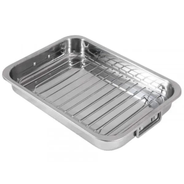 Ugnsform i rostfritt stål är ett mångsidigt köksverktyg som erbjuder en volym på 2,7 liter. Tillverkad av rostfritt stål, har denna ugnsform en avtagbar stekhållare som möjliggör tillagning av olika rätter utan att de kokar i sitt eget spad. Du kan också laga traditionella gratängrätter utan hållaren. De praktiska handtagen kan fällas ner, vilket underlättar hanteringen. Denna ugnsform är ett utmärkt val för mångsidig matlagning i ugnen.