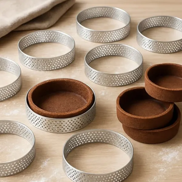 6 perforerade kanter är ett oersättligt hjälpmedel för att tillaga läckra tartletter och andra läckra bakverk. Varje kant är tillverkad av högkvalitativt rostfritt stål , vilket garanterar hållbarhet och genomgående utmärkta bakresultat. Tack vare mikrohålen i kanterna stöds kakans kant, vilket garanterar jämn gräddning och en läcker, krispig finish.