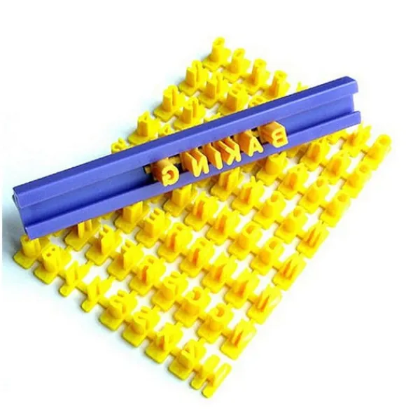 Paketet innehåller bokstäver och siffror. Varje symbol mäter ca 0,5 x 0,5 cm.