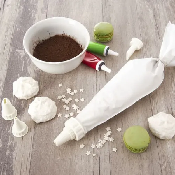 En uppsättning tillbehör för att dekorera desserter. Med dess hjälp kan du enkelt applicera krämer och kakor. Den är användbar för att forma maränger och applicera pastor och fyllningar, men även för att fylla, dekorera och glasera kakor. Extremt lätt att använda. Oumbärlig i varje kök. Lätt att använda och rengöra. Originalprodukt från det holländska märket LaCucina. Tillverkad enligt europeiska standarder.