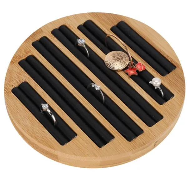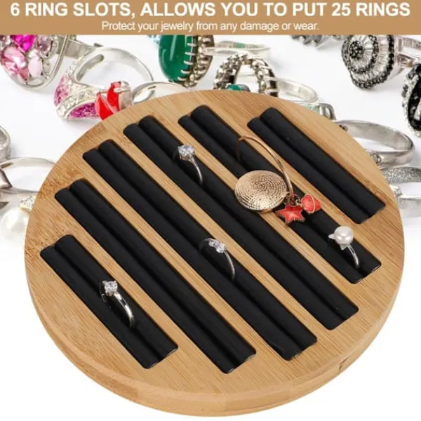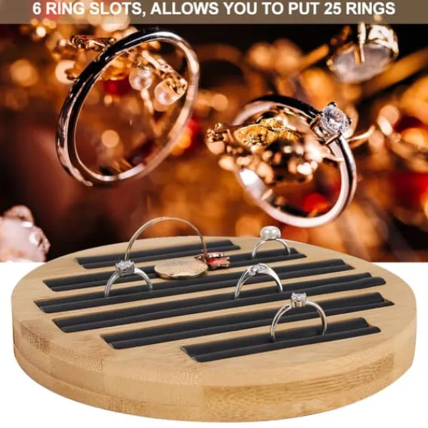 Välkommen till vår butik! Denna eleganta ringbricka har 6 ringfack som rymmer upp till 25 ringar, vilket helt uppfyller dina förvarings- och visningsbehov. Tillverkad av högkvalitativ bambu och fint konstläder, är den mjuk och skyddande, vilket säkerställer att dina smycken förblir fria från skador eller slitage. Den runda formen är enkel och snygg och visar perfekt upp dina ringar. Med utsökt hantverk är den polerad slät utan grader, säker för händerna. Den har ett brett användningsområde och är lämplig för juvelerarbutiker, butiker och hemmabruk. Produkten är 100 % helt ny, tillverkad av bambu och konstläder, i färgerna som visas på bilden. Den har en diameter på cirka 15 cm och en höjd på cirka 2 cm, perfekt för att visa upp och förvara ringar. Du får 1 x Ringbricka. Nöjdhet: Våra kunder är vår högsta prioritet. Om du upptäcker några produktproblem efter att du mottagit varorna, såsom skador och felaktig mängd varor, vänligen kontakta säljaren omedelbart. Vi gör vårt bästa för att ge dig tillfredsställande kundservice.