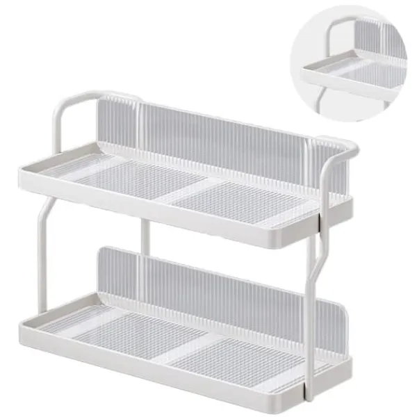 2、 Dubbellagerdesign: Maximerar utrymmet på bänkskivan, denna 2-vånings förvaringshylla ger gott om förvaring och hjälper till att hålla ditt kök organiserat och snyggt.