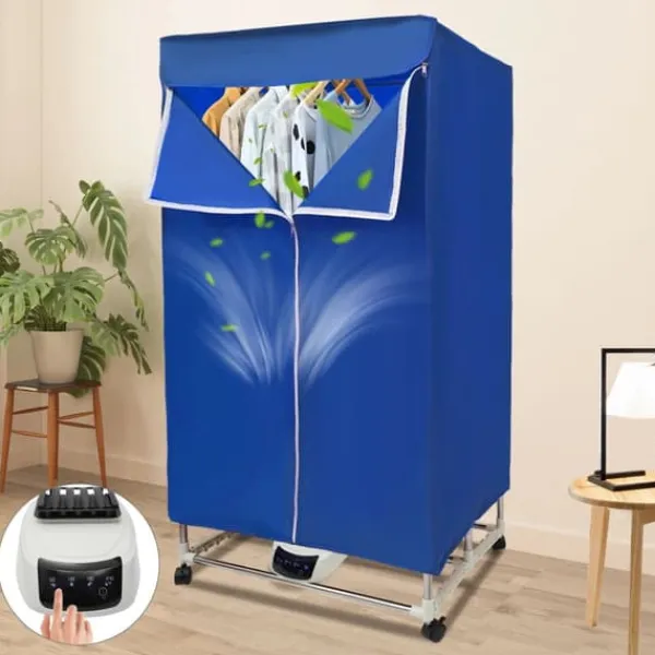 Den hopfällbara konstruktionen och den robusta ramen i rostfritt stål (32 mm) gör den enkel att förvara och stabil i bruk. Den medföljande ytterhöljet i Oxford-tyg och PC hjälper till att hålla värmen inne för jämn torkning.