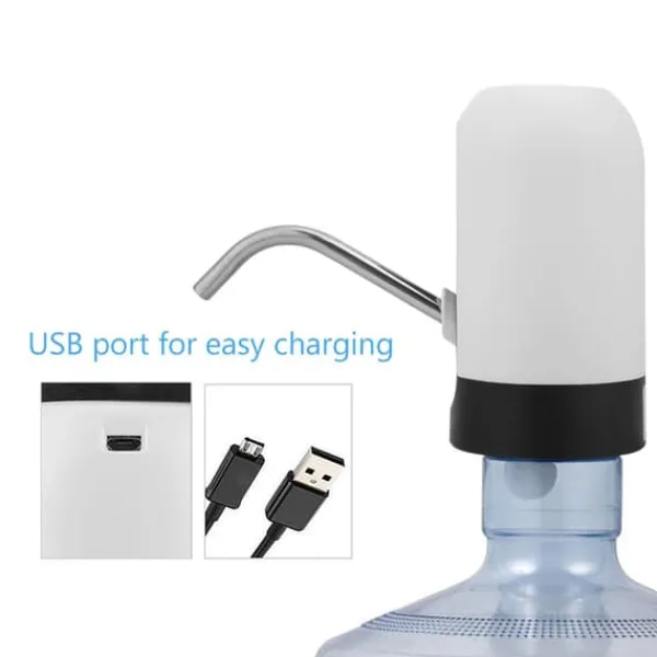Bärbar LED-ljusflaskvattenpump USB-uppladdningsbar dispenser för hemmakontor (vit)