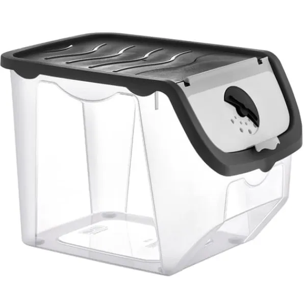 Frukt- och grönsaksbehållare med måtten 30 x 23,5 x 23,5 cm och en kapacitet på 12 liter. Behållaren är gjord av högkvalitativ, transparent plast och har ett svart lock. Den har justerbar ventilation, så frukt och grönsaker håller sig fräscha längre. Den kan också användas för att förvara djurfoder. Det klippöppna locket är bekvämt att använda. Du kan enkelt ta bort och stoppa in önskade grönsaker. Behållaren kan förvaras i frysen. Den är lätt att rengöra, eftersom den tål diskmaskin. Vid köp av ett större antal behållare kan vi enkelt förvara dem, lämplig konstruktion gör det möjligt att stapla behållarna.