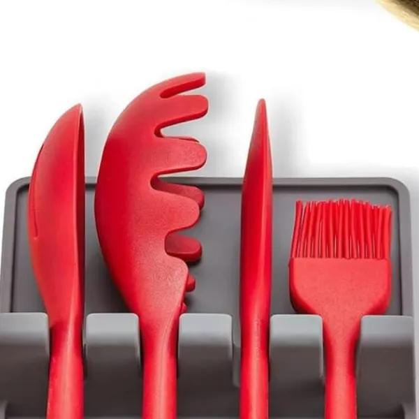Multifunktionell bestickhållare: Denna silikonskedhållare har flera fack för att hålla en mängd olika köksredskap, såsom skedar, spatlar och slevar.