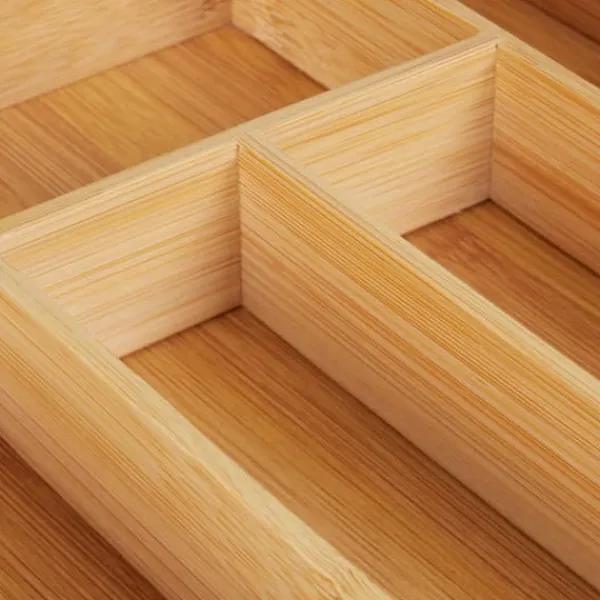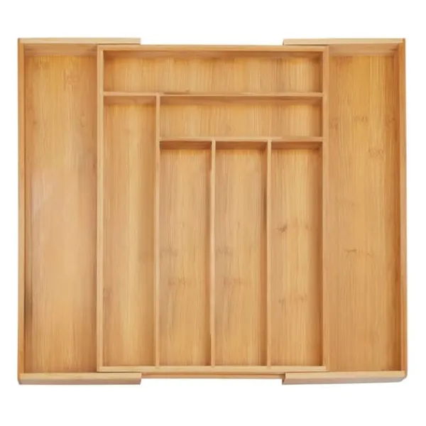 Håll dina kökslådor prydliga och organiserade med denna utdragbara besticklåda i bambu, designad för att rymma olika typer av bestick och kökstillbehör. Med flera justerbara fack passar den både små och stora lådor och erbjuder mångsidig förvaring för bestick, hantverks- eller sybehör. Tillverkad av naturlig bambu är denna robusta organisatör både hållbar och miljövänlig.