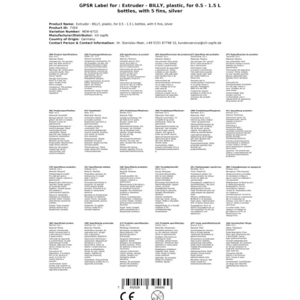 BILLY – plasthäll för 0,5 – 1,5 l. Flaskor – silver – med 5 lameller – plasthäll för 0,5 – 1,5 l. Flaskor – silver – med 5 lameller