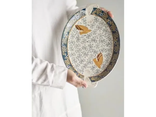 BLOOMINGVILLE Hezha serveringsbricka, blå, stengods