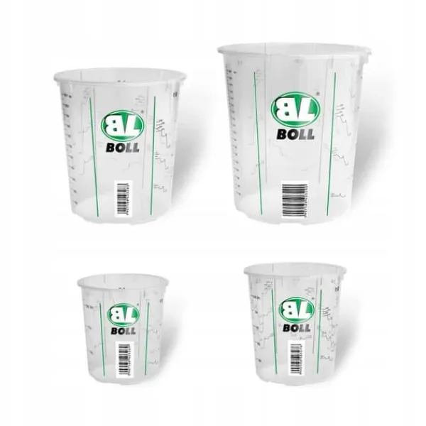 Universalbehållare av transparent plast med tryckta graderingar som gör att du kan tillreda blandningen i önskad proportion.