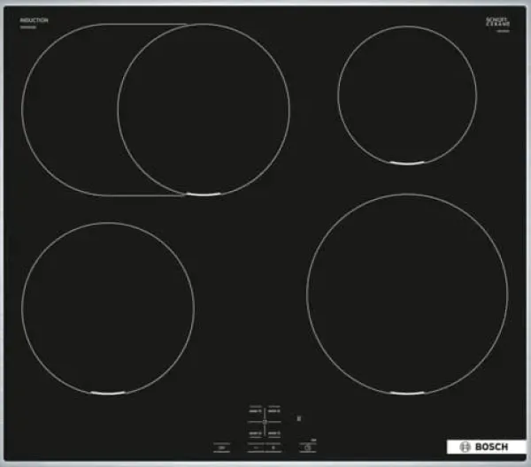 Bosch HEG578BB4 + NIF645CB5E, Induktionshäll med zon, 4 zone(s), Glass-keramisk, Svart, Röra, 58,3 cm