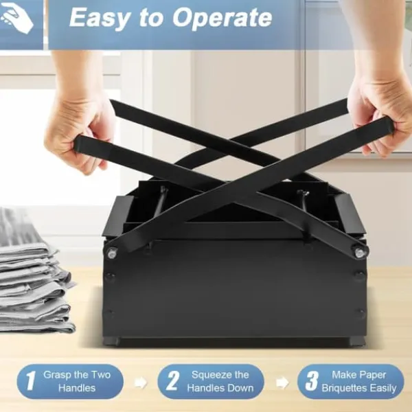 Lätt att pressa Krysshäveln multiplicerar handkraften. Greppa de två handtagen och tryck ned för att forma kompakta pappersbriketter med minimalt arbete.